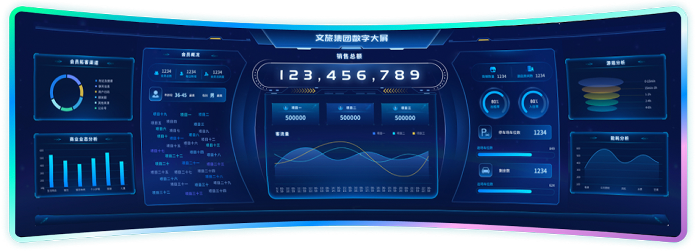 - 多维整合票务、客流、餐饮、酒店等关键数据,全面还原景区运营全貌
